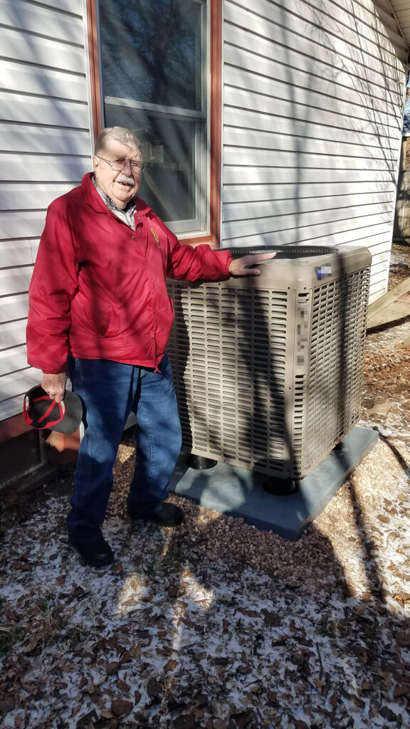 This last fall, All Seasons Cooling & Heating of Rose Hill nominated Mr. Richard Tarbox of Rose Hill. Richard is a retired military veteran with 41 years of service. He has always been very generous with his time in the Rose Hill community, especially with the Boy Scouts and senior center for many years. The existing heating and cooling system in his home is 30+ years old and is beyond repair. This has left him with extremely high electric bills and ultimately without air conditioning the last couple months of this last summer season. Mr. Tarbox was chosen as one of the recipients of a new locally manufactured York heat pump system. We are extremely happy to offer this heat pump system with no cost accrued by Richard for any part of the system install. This is made possible by the extreme generosity of the following contributions. The equipment was donated primarily by CFM Distributors of Wichita, with the assistance from KCCA board & members, and Comfort Products Distributing of Wichita. All Seasons Cooling & Heating of Rose Hill, alongside Winter Sheetmetal of Viola, provided the necessary installation materials and labor to install the new heat pump system. Also, the City of Rose Hill has been gracious to donate the fees for the permit and inspection of the new heat pump system.